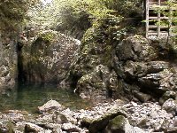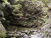 行ってみると、天岩戸らしい岩の塊が右手と左手2方向見える。 私のイメージでは左側なのだが、岩の戸と言うからには右側(上の写真)のほうがそれらしい。 人に聞こうにも人がいない。 足が痛いからとりあえず宿題。 さて、次は元伊勢神宮へむけてGo!だ。 また小休止。 東京の知人にTEL。 おぉ!こんなところでも携帯の電波が通じるとは。 恐るべし、高天原?。 |