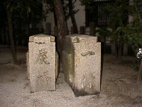 | 17:20 | 安倍晴明神社。 日本最高の陰陽師を祭る神社。 以前ここで買った鬼門封じの御札は我が家のトイレに鎮座まします。 今回の旅の目的のひとつ、前の戻り橋の橋桁を見にきた。 7年程前はじめて戻り橋を訪れた時はこの橋桁だった。 或るホームページで紹介してあるのを知ったので、今回は是非と思っていた。 小さければ持って帰りたい程だ。 すでに辺りは真っ暗。 |
