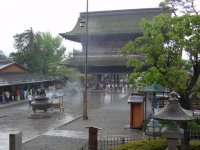 門前からまっすぐ本堂に向かう。 なんとなく、風意気が浅草の仲見世通りに似ている。 本堂の前の門を見上げると、 ”善光寺”の三文字が燦然と輝いて見えた。 すげぇ。 |