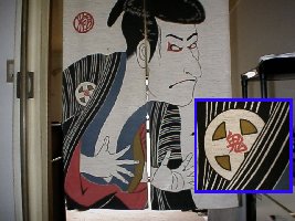 | 鬼公子愛用・鬼族御用達の ”のれん”(左)と”バスタオル”(右)。 この紋所を見て、”鬼島津”と謳われた島津○○だと思っていたが、東京国立博物館に出入りしている知り合いによって、右のように判明した。 |